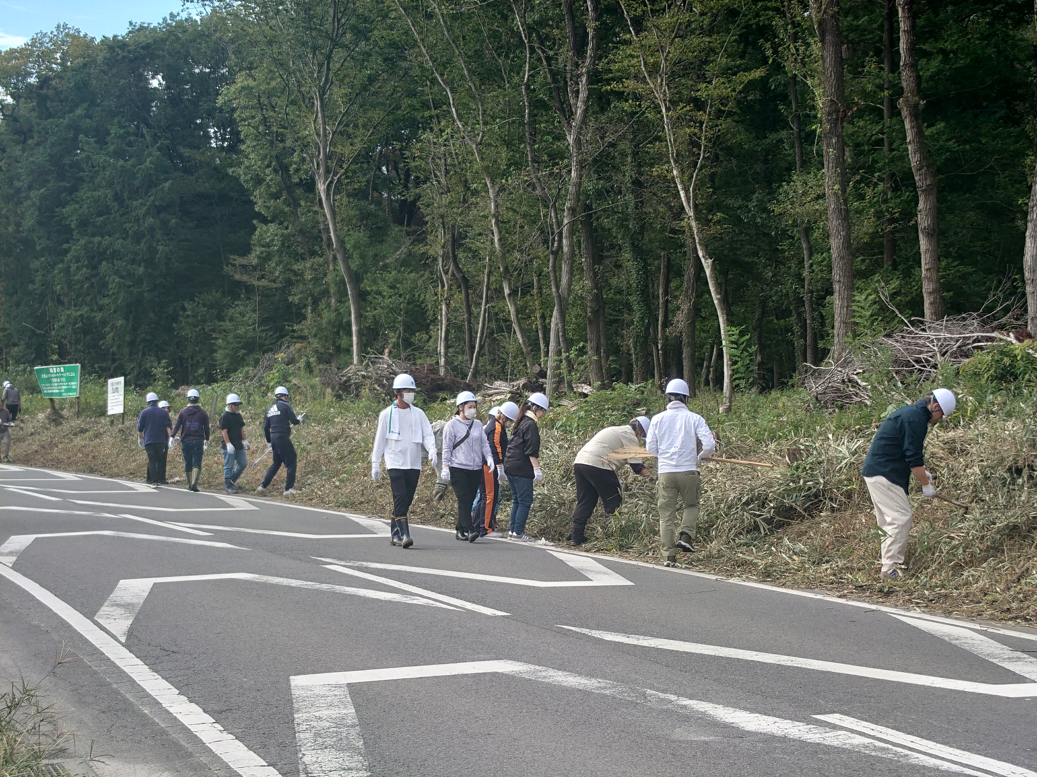 今回の活動は、道路沿いの枯れ木・枯れ草をまとめるといった作業で、参加者どうしで
