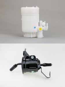 燃料の配管途中やフューエルポンプモジュール内に搭載されており、燃料中に含まれる細かな異物を除去し、インジェクタなどの燃料噴射系の詰まり・摩耗を防止します。