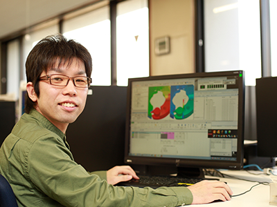 私には将来の目標があります。これからどんどん解析は普及していくと思いますが、そのために解析体制を図ることは急務だと思っています。設計者が気楽に解析できるような教育体制を確立、そして解析マニュアルを充実させて、最終的には全社員の解析技術を高めることが私の目標です。そのためにはトップのエンジニアになりたいと思っているので、今も計算力学の資格をとるための勉強や、インターネットにある様々な解析を目で見て考え、日々努力をしています。