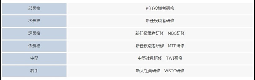 入社後、それぞれの昇格・成長に合わせて、期待される役割を認識・マインドを醸成し その役割遂行に必要な知識・スキルを習得するための教育