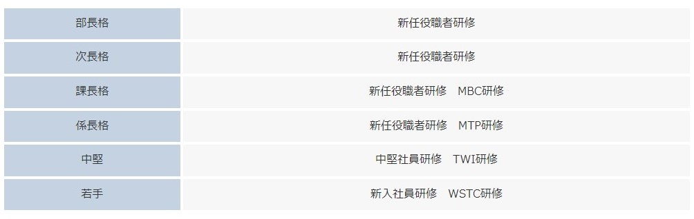 入社後、それぞれの昇格・成長に合わせて、期待される役割を認識・マインドを醸成し その役割遂行に必要な知識・スキルを習得するための教育