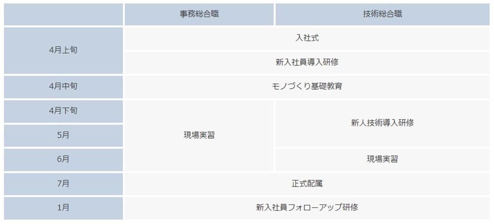 ※内容やスケジュールは、入社年度によって変更となる可能性があります。