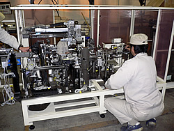 京三電機は、時代をリードする生産システムを目指し、フレキシブルで信頼性の高い生産設備を自社開発・製作しており、独自のアイデアが生かされた生産設備によって、ローコスト・高品質の製品をタイムリーにお客様に提供しています。また、自動化されたラインでは、加工から組立まで一貫した生産を行っており、高品質生産を安定して作り出すために、常に検討・改良が加えられ、高い生産性を実現しています。