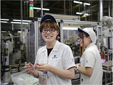女性だけのグループを作り、改善活動を行っています。そして、誰でもできるダイバーシティ活動(ハートフルライン化)により、作業のやり易さをさらにレベルアップしています。ハートフルラインとは、子育て・介護・障がい・疾病復帰等の制約があっても働き続けられ、成果が出せる仕組みや環境を整え運用を図ります。今までは、男性であることを前提とした作業が多く、女性はかなりやりづらさを感じていました。しかし、苦労していた機械の高さや奥行きの調整、工程の選択、標準作業の選択、時間帯の選択ができるようになり、働き手の身体の状態に合わせてカスタマイズ=選ぶことができるようになりました。結果として、「男性に頼らずに自分でできる自身がついた」「頼まれごとが多くなった」「重い・怖い・汚いが軽減され、誰でもできる作業が増えた」「制約のある作業者を少しでも迎え入れる準備ができた」「人に優しい改善を横展開することができた」など、今までつらかった作業・できなかったことがどんどん実現していくようになり、女性からは高い評価を得ています。