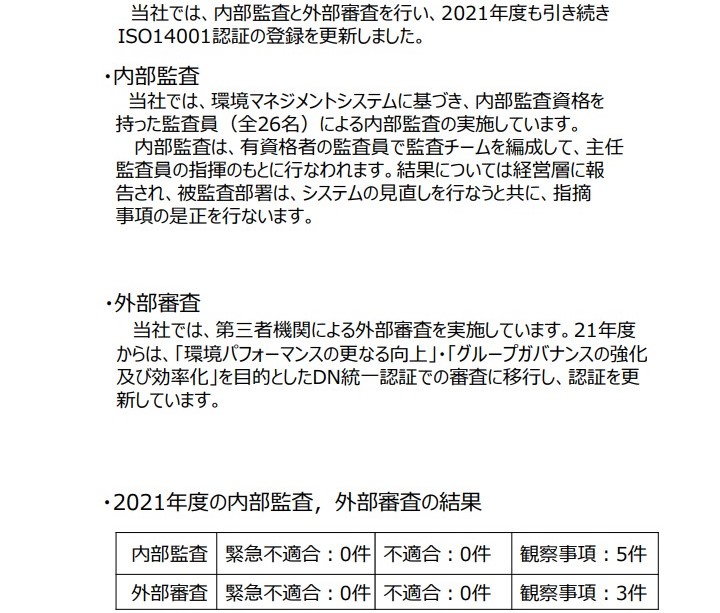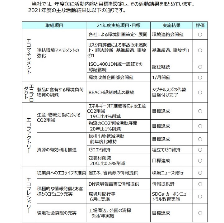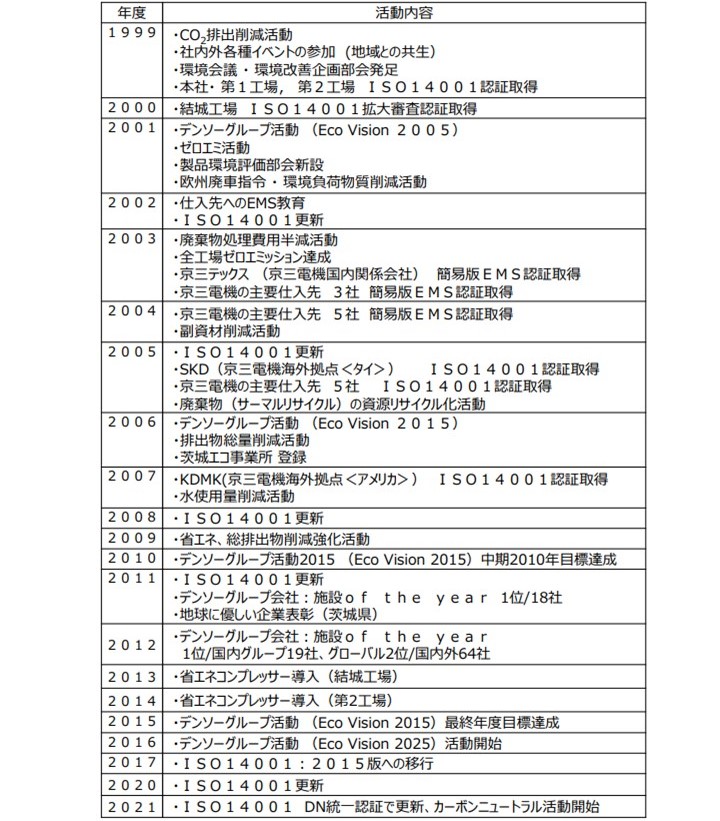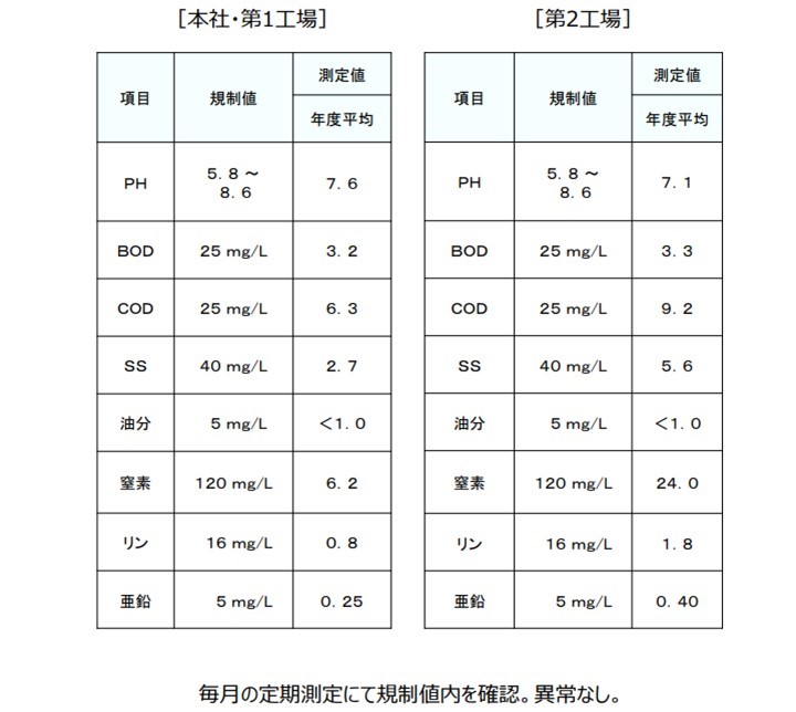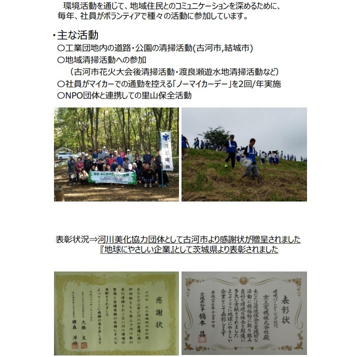 国内全3工場(本社・第1工場、第2工場、結城工場)において、国際標準化機構の環境管理規格であるISO14001の認証を取得しています。