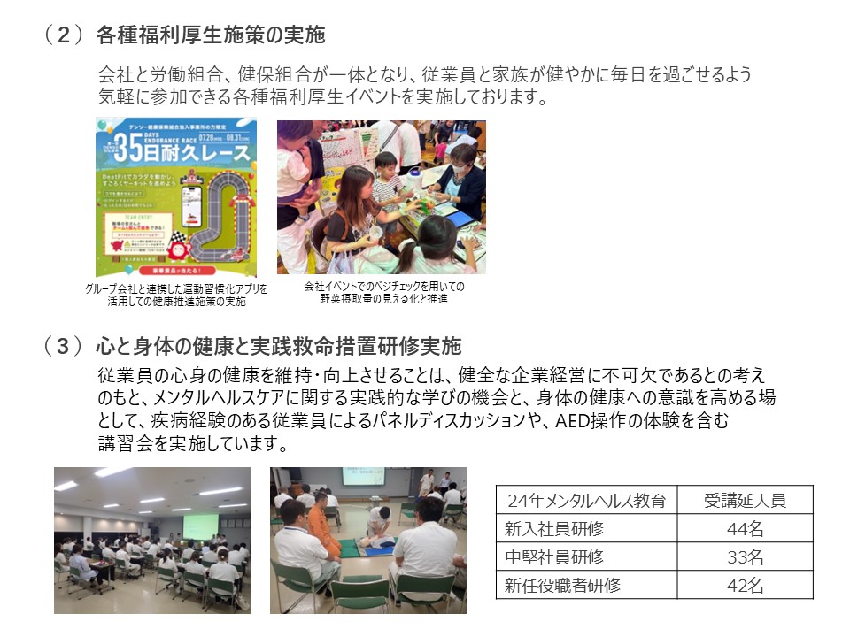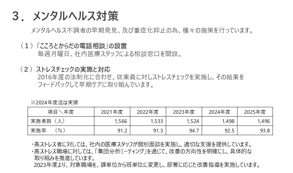 社員がいきいきと働くことができる「こころとからだの健康施策」の推進、
